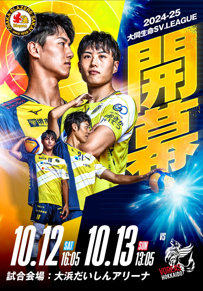 新たにアルゼンチン代表としてオリンピックに出場したルチアーノ・パロンスキー、チーム初のアジア特別枠選手として加入したツァイ・ペイチャンを迎えチーム強化を行った日本製鉄堺ブレイザーズが、ヴォレアス北海道を大浜だいしんアリーナで迎え撃つ。チームと共にレベルアップした光・音・炎のエフェクトでよりバレーボール観戦が楽しめること間違いなし!
