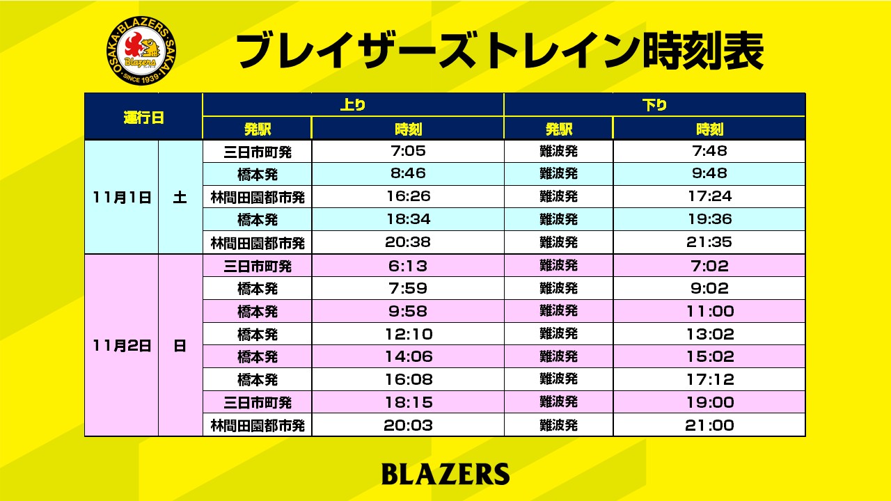 堺ホームゲーム開催日のブレイザーズトレイン運行情報について