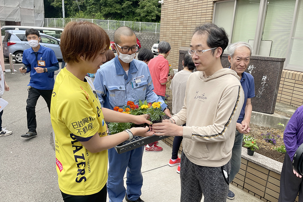 日本製鉄㈱関西製鉄所、花王㈱和歌山工場、堺ブレイザーズの3社が連携して希望する施設に花苗セットを提供していくSDGs協働活動。
