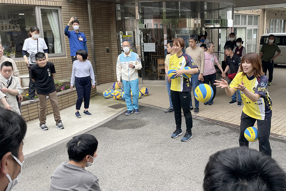 花苗と堆肥原料で花壇に植付けを行い、その後はバレーボールに触れてもらいました。