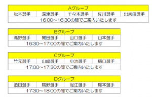 ・チーム事情で急遽トークルームを開設できない選手が発生する可能性がありますので予めご了承ください。
