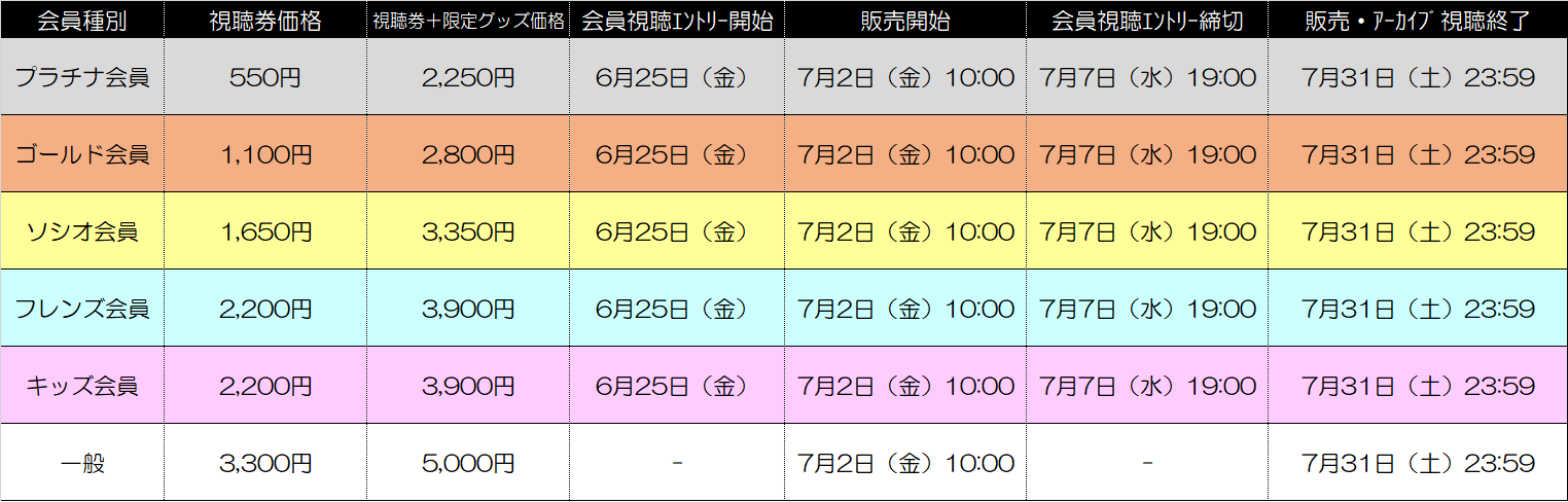 ・販売、アーカイブ配信終了:7月31日(土)23時59分