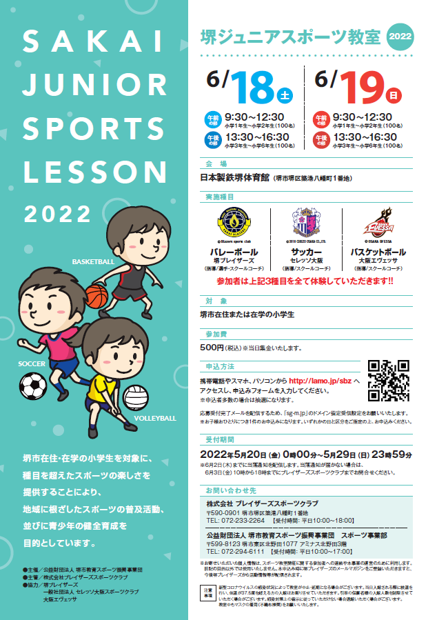 堺ジュニアスポーツ教室2022について、お知らせいたします。