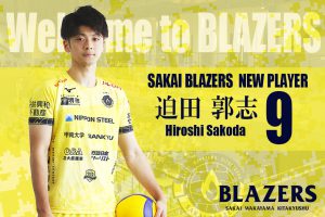 この度、迫田郭志選手が6月24日付けで堺ブレイザーズに入団いたしました。