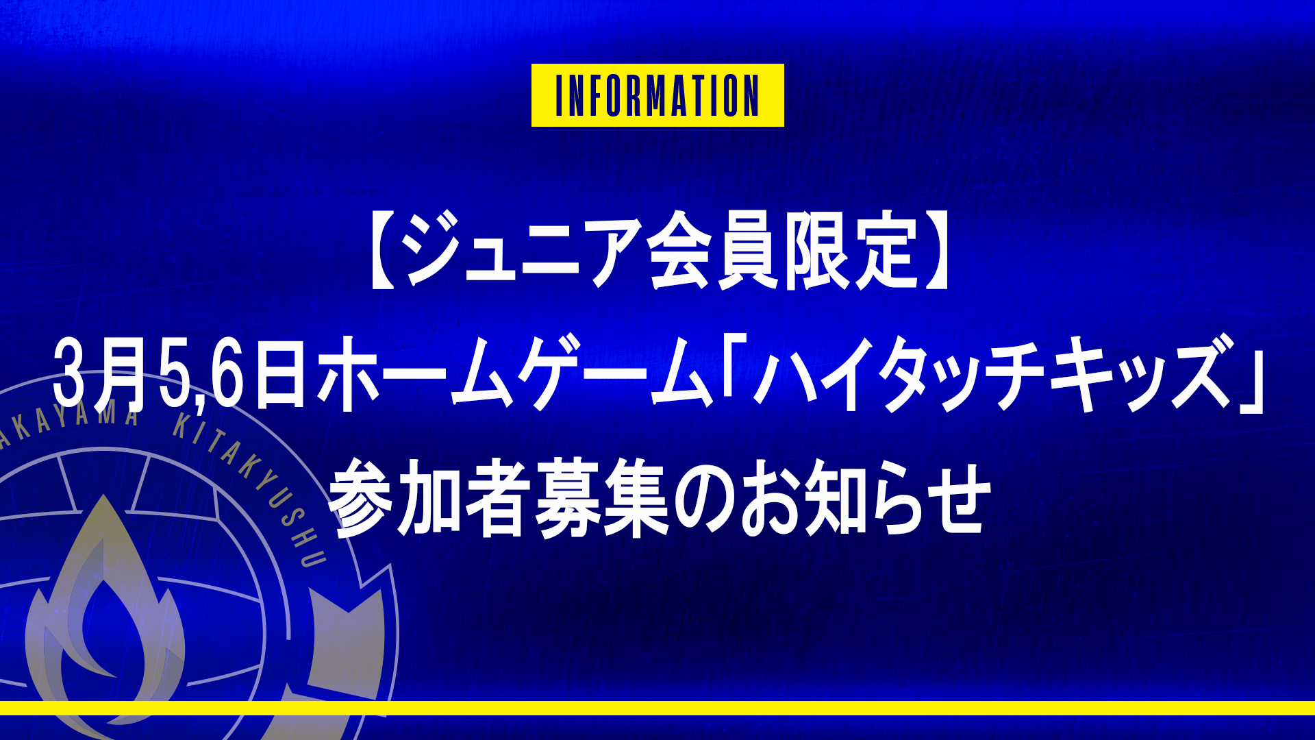 【ジュニア会員限定】3月5.6日 ホームゲーム「ハイタッチキッズ」参加者募集のお知らせ