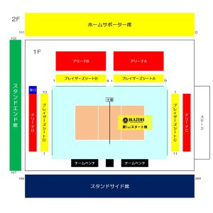 ブレイザーズシートA 11,000円(主審側ホームスタート側のコートサイドの1列目)