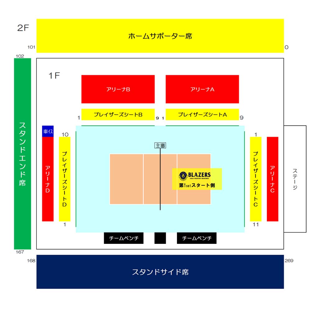 アリーナA 7,700円(主審側ホームスタートのコートサイド)