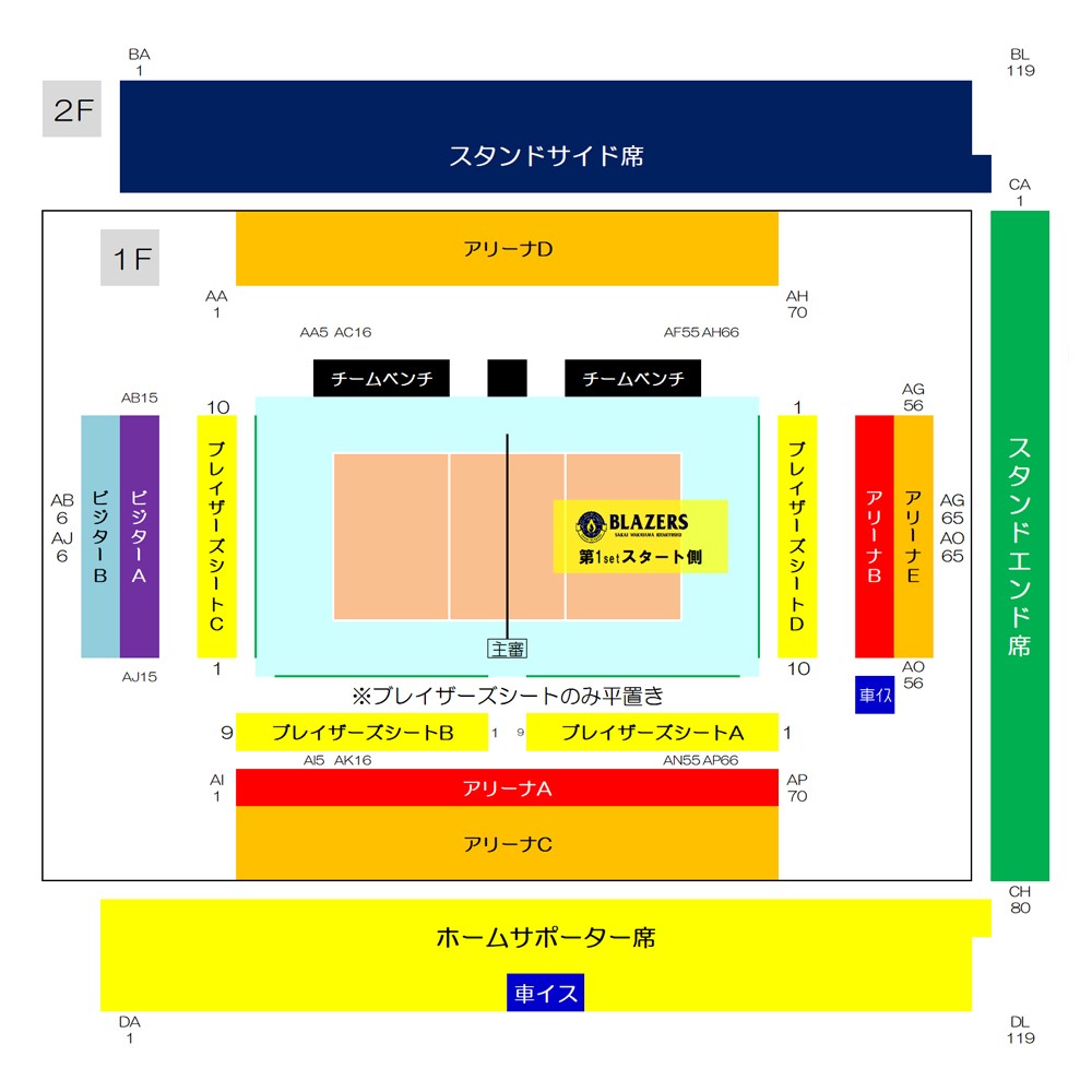 【アリーナエンド ビジターシートA(1~2列目)、ビジターシートB(3~7列目)】
