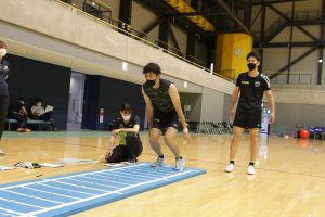 握力や立ち幅跳びを測定し、ご自身の年齢の平均と比べることができるだけでなく、昨年6月に堺ブレイザーズ選手が測定した結果とも比べることができます。
