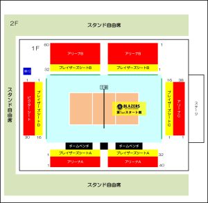 ブレイザーズシートB 11,000円(主審側コートサイドの1列目)