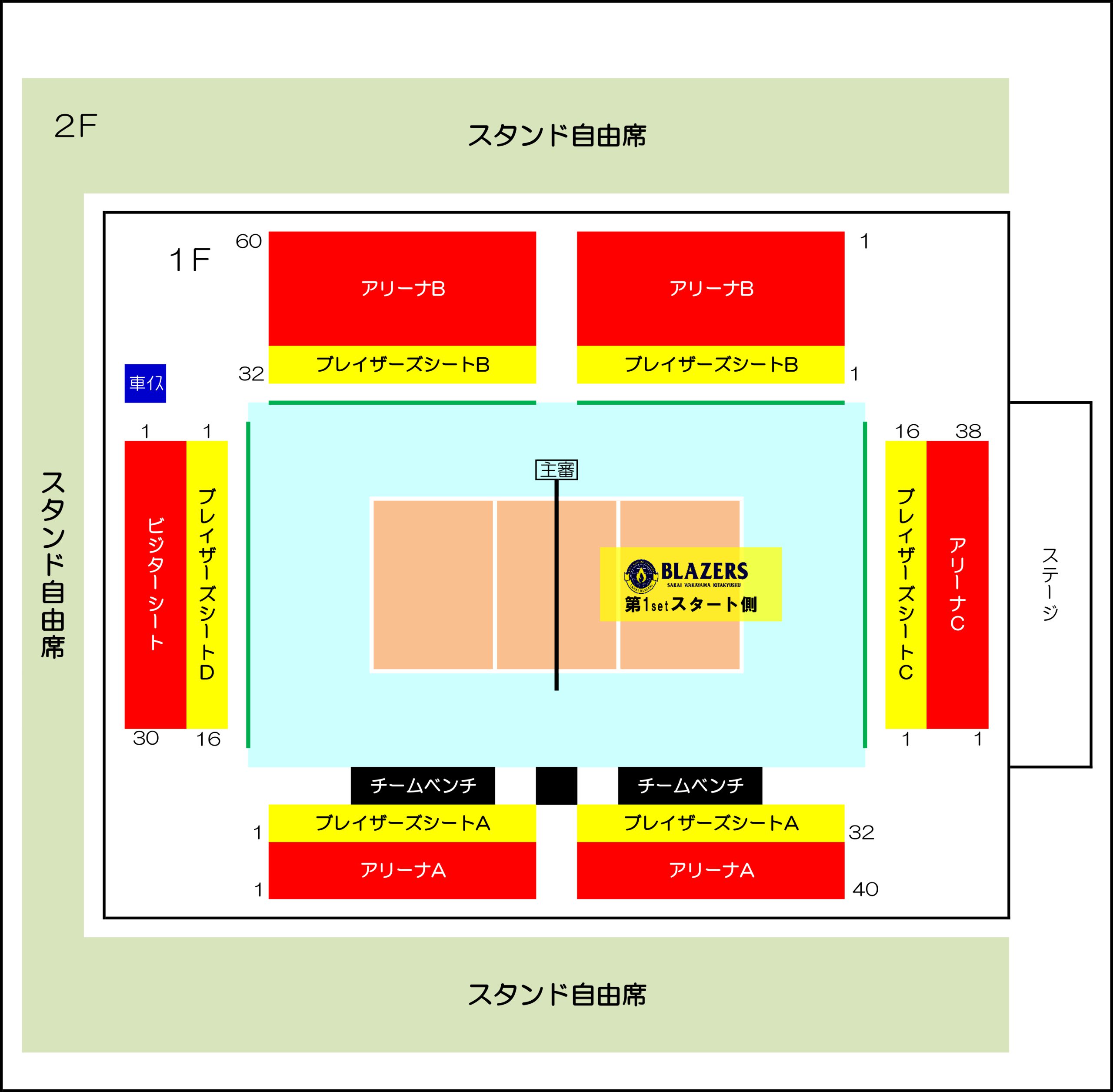 アリーナA 4,900円(副審側コートサイド2~4列目)