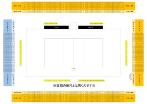 ※アリーナ席は可動式スタンドになっており、同じ列でもブロック名が異なり席番の間が飛んでいる箇所がございます。