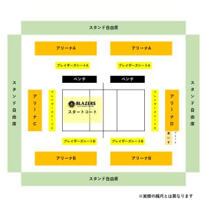 ・ブレイザーズシートのブレイザーズスタートコート側でのアウェイチームの応援はご遠慮ください。