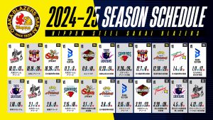日本製鉄堺ブレイザーズの初戦は、10月12日(土)にホーム大浜だいしんアリーナでヴォレアス北海道との対戦に決定いたしました。