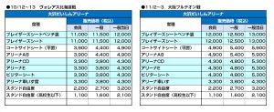 ・アリーナ席スタンド席共に小学生以上有料、大人1名につき未就学児1名無料(子供1名まで膝上可、座席が必要な場合チケット必要)