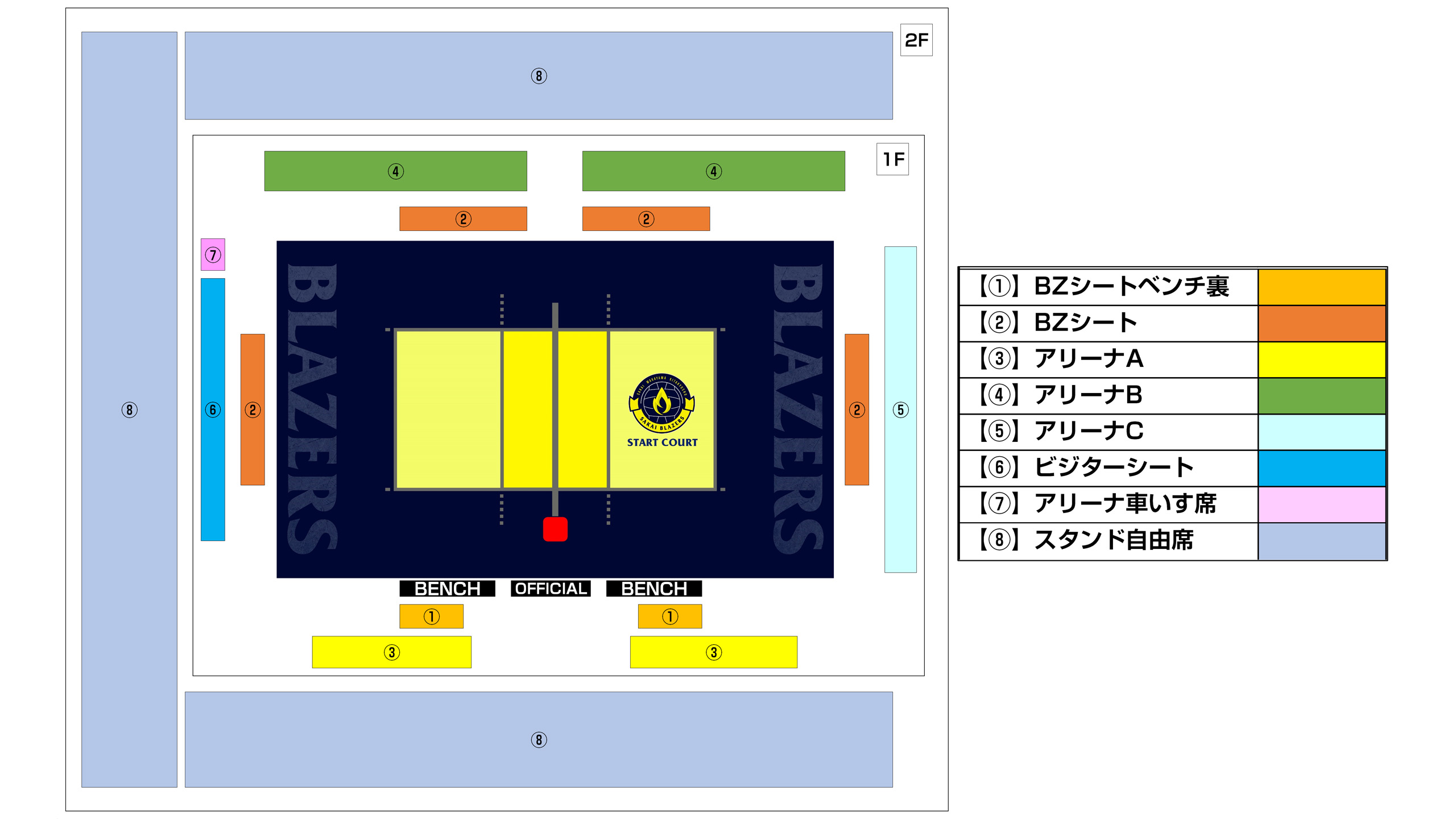 ・ベンチ裏側のお席やコート周辺のお席(BZシート、アリーナ各席種)については、選手やチームスタッフ、競技運営上の機材が観戦の妨げとなる可能性がございます。あらかじめご了承の上チケットをご購入ください。