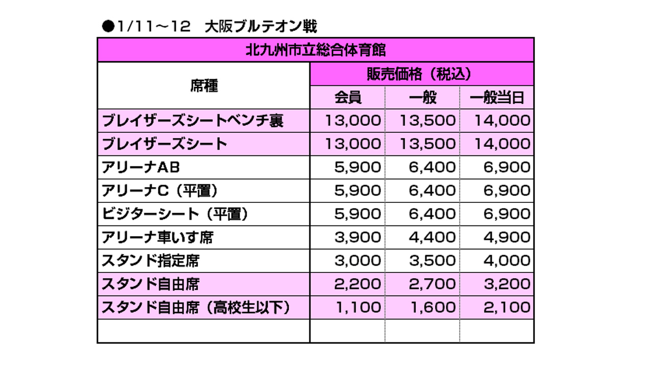 【1月11日(土)、12日(日)北九州大会 大阪ブルテオン戦】