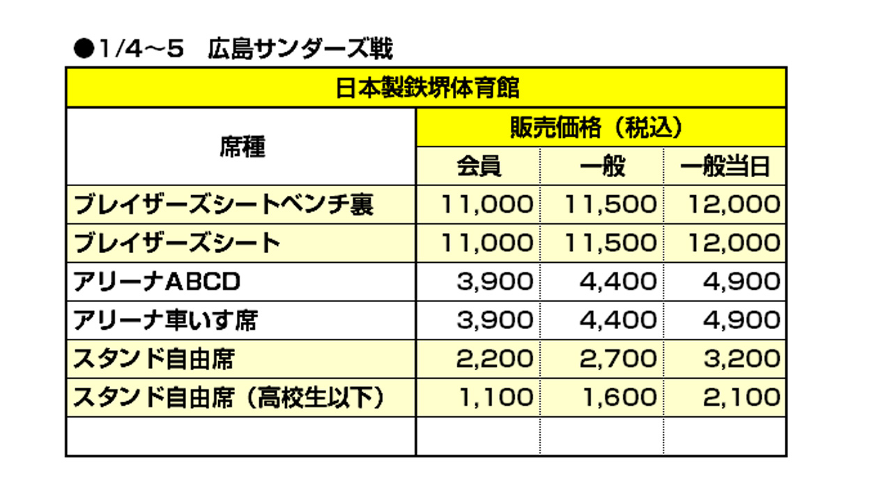 ・ブレイザーズシートの日本製鉄堺ブレイザーズスタートコート側でのアウェイチームの応援はご遠慮ください。