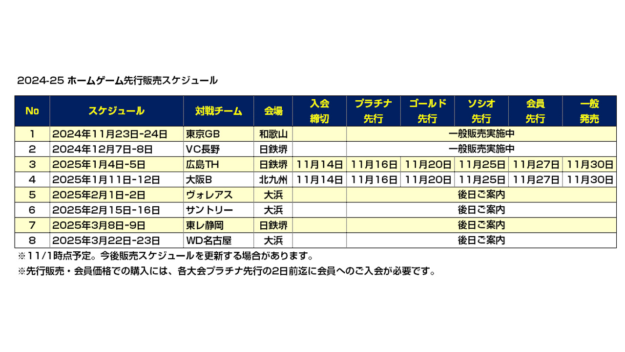 【2025年1月開催分】2024-25 大同生命SV.LEAGUEホームゲームのチケット販売について