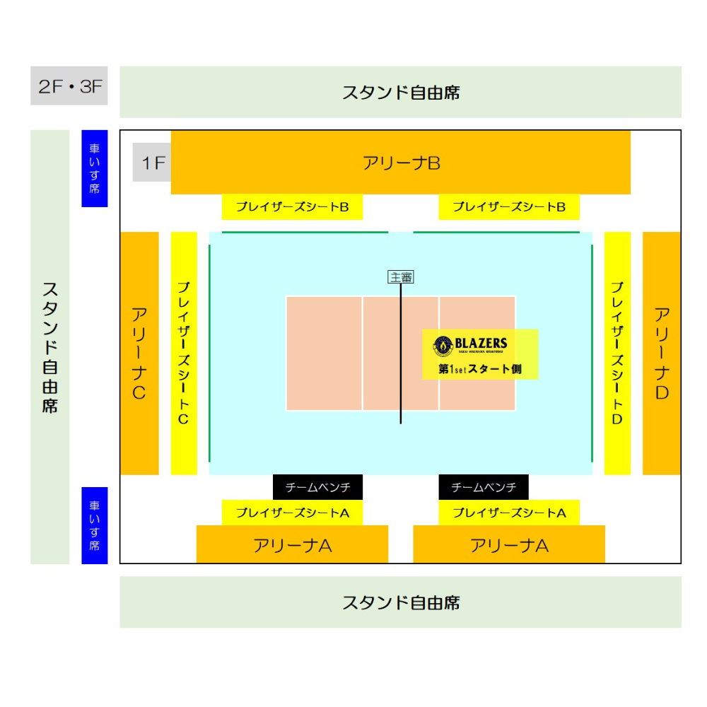 ・ブレイザーズシートのホームスタートコート側でのアウェイチームの応援はご遠慮ください。