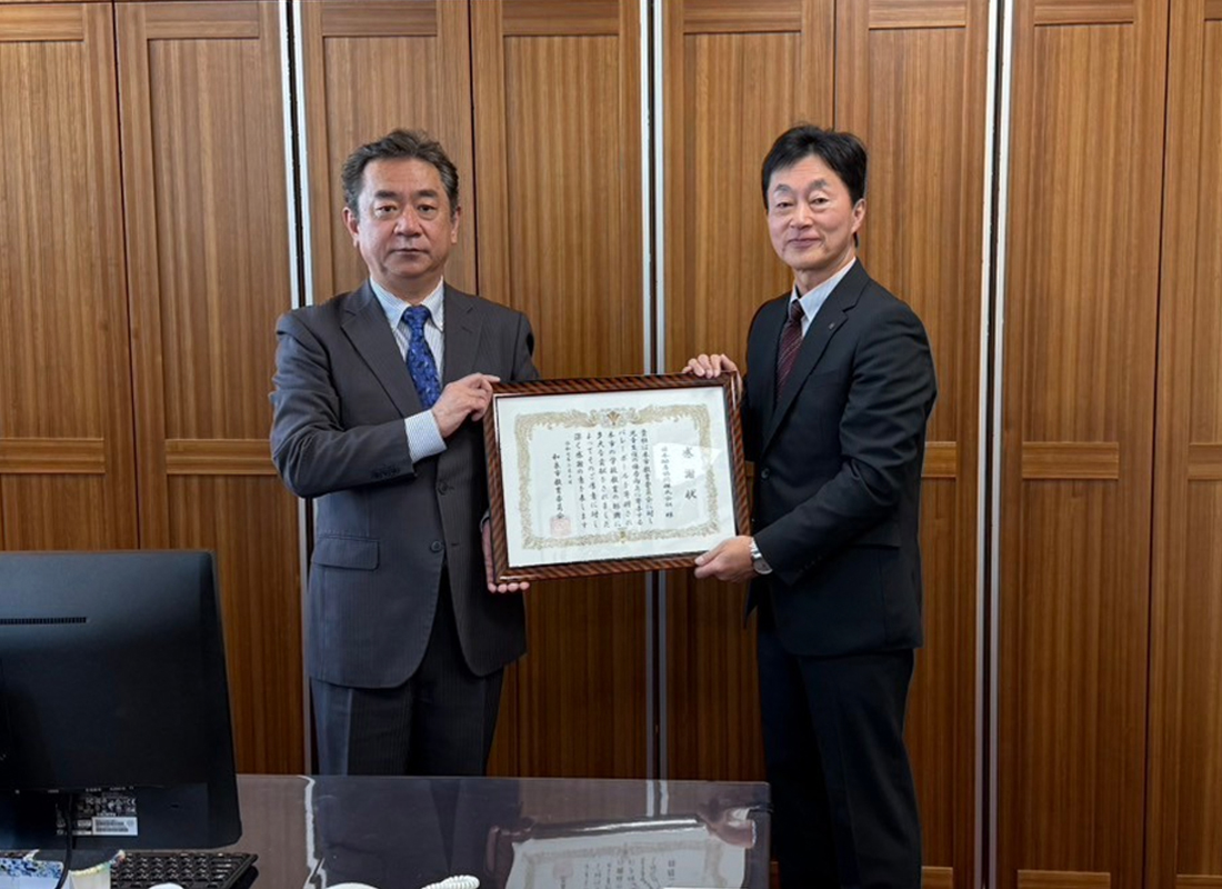 大槻教育長(左)から日本酪農協同株式会社 代表取締役 後藤様(右)へ感謝状を贈呈