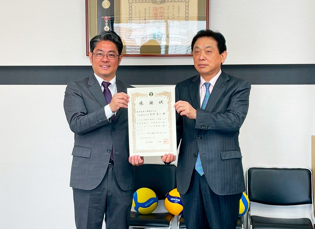 この度、日本製鉄堺ブレイザーズが『ホームタウンと、子どもたちの笑顔の為に』のスローガンのもと取り組んでいるSDGsプロジェクト『Blazers Smile Action』へご賛同いただきました髙砂金属工業株式会社様(大阪府高石市、代表取締役:宮﨑 吉ニ)のご協力のもと、高石市内の小学校現場で使用する「スマイルボール70球」と中学校現場で使用する「バレーボール30球」を高石市教育委員会に寄贈いたしました。