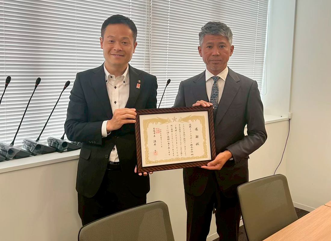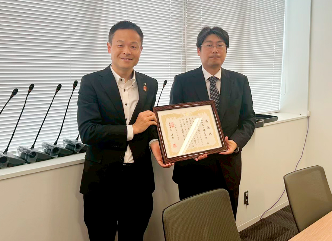今回の寄贈に対し、2025年5月28日(水)に貝塚市役所にて感謝状贈呈式が行われました。