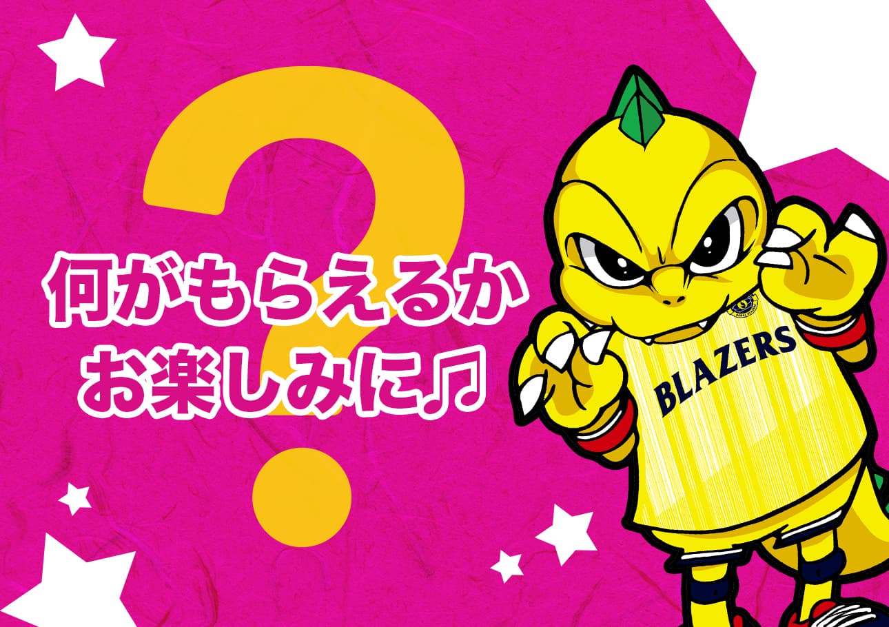 会場での応援練習や、試合中に応援団長やB-REX(10日のみ)が注目した方にブレイザーズグッズをプレゼントします。