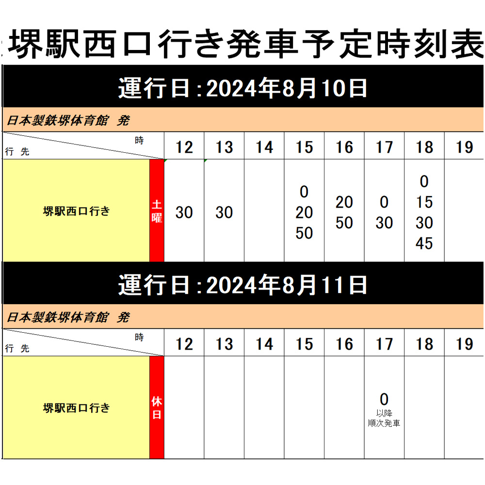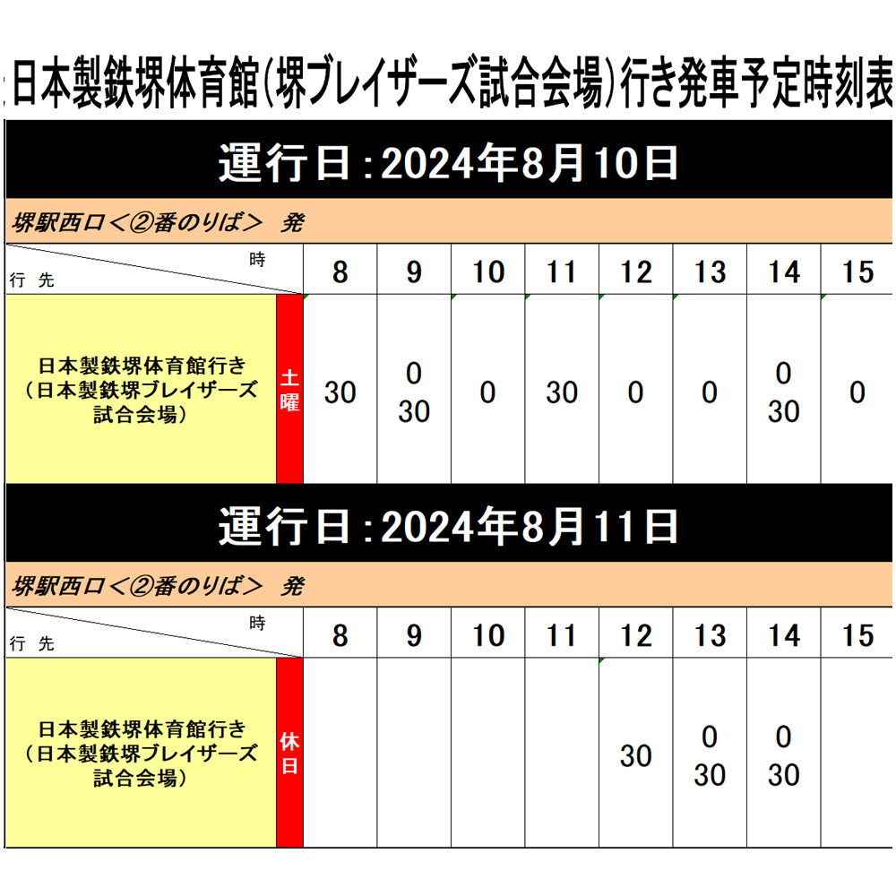 ○日本製鉄堺体育館乗り場時刻表○